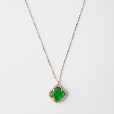 This exquisite necklace, crafted in 925 sterling silver, showcases a four-leaf clover pendant made from emerald-coloured quartz. The pendant’s intricate detailing is complemented by a delicate chain, enhancing its timeless elegance. Perfect for adding a touch of sophistication and good fortune, this piece is an ideal accessory for both everyday wear and special occasions.