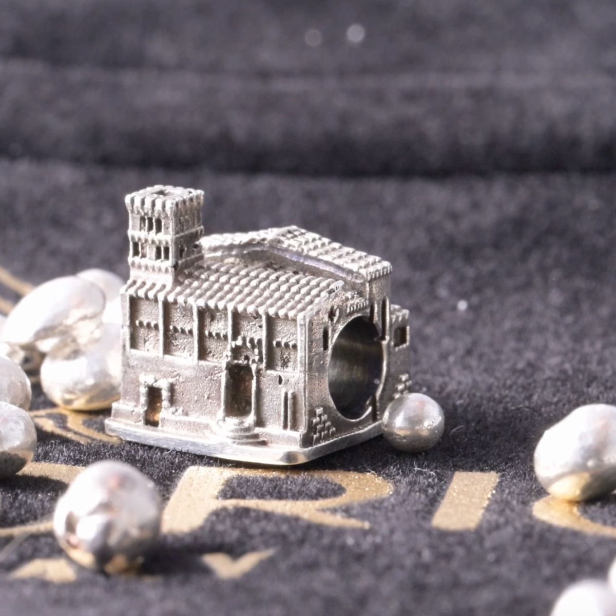 The Duomo di Barga Charm by Moriconi Italy is an elegant piece inspired by the Duomo of San Cristoforo, the historic and cultural symbol of the Tuscan town of Barga. Crafted in 925 sterling silver with an oxidised finish, it highlights the architectural details with depth and precision, enhancing the character of the design.